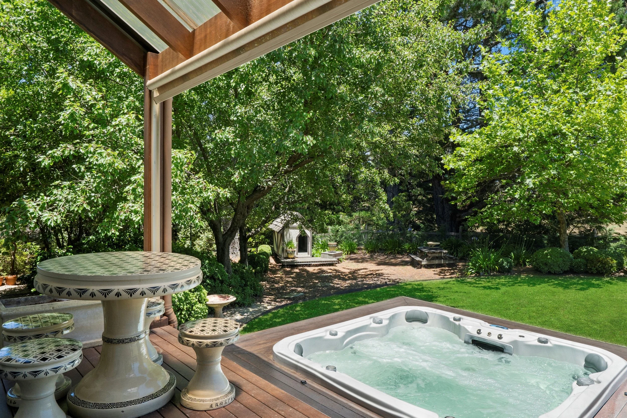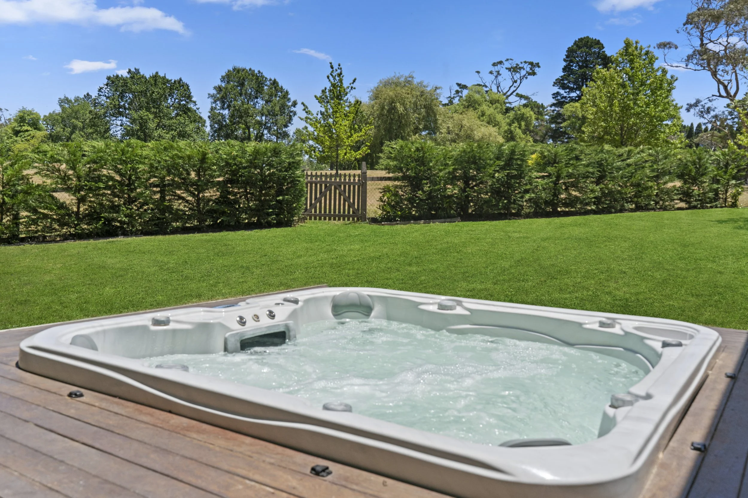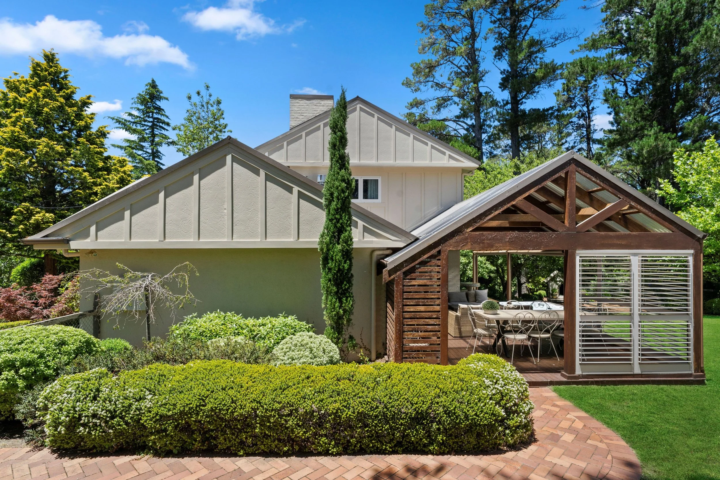 The sweeping, fully fenced lawn provides a private and picturesque setting for families. Children can roam and play freely, while adults relax knowing the space is entirely their own. Sculpted garden beds, seasonal blooms and established hedges frame the property, creating an atmosphere reminiscent of a luxurious country estate.